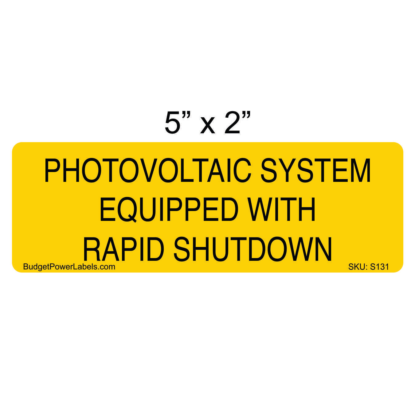 S131 - 5"x2" Photovoltaic System Equipped With Rapid Shutdown Sticker